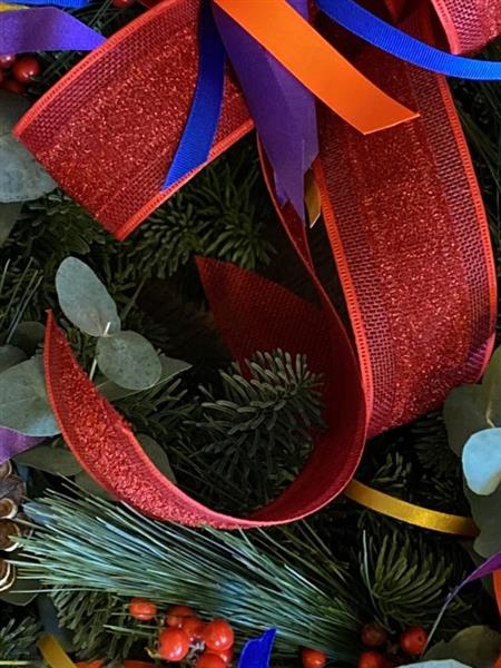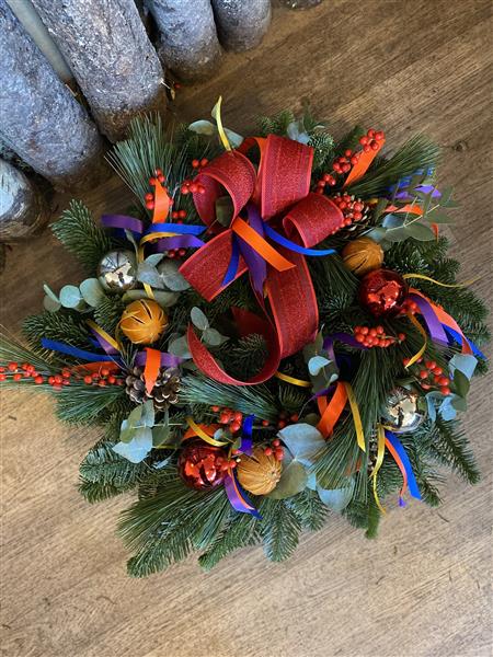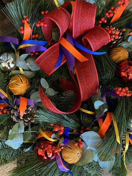 A beautiful bright fresh Christmas door Wreath handmade by Donna to welcome you home.